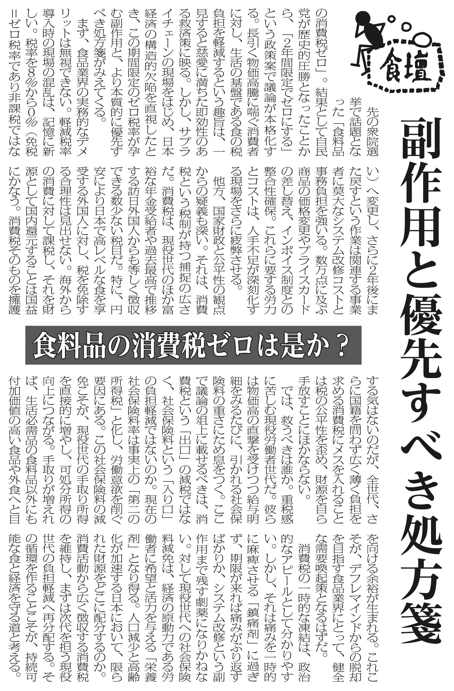 食料品の消費税ゼロは是か?/副作用と優先すべき処方箋