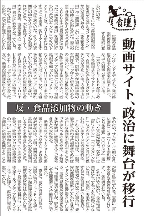 平素は『食品化学新聞』をご愛読いただきまして誠にありがとうございます。