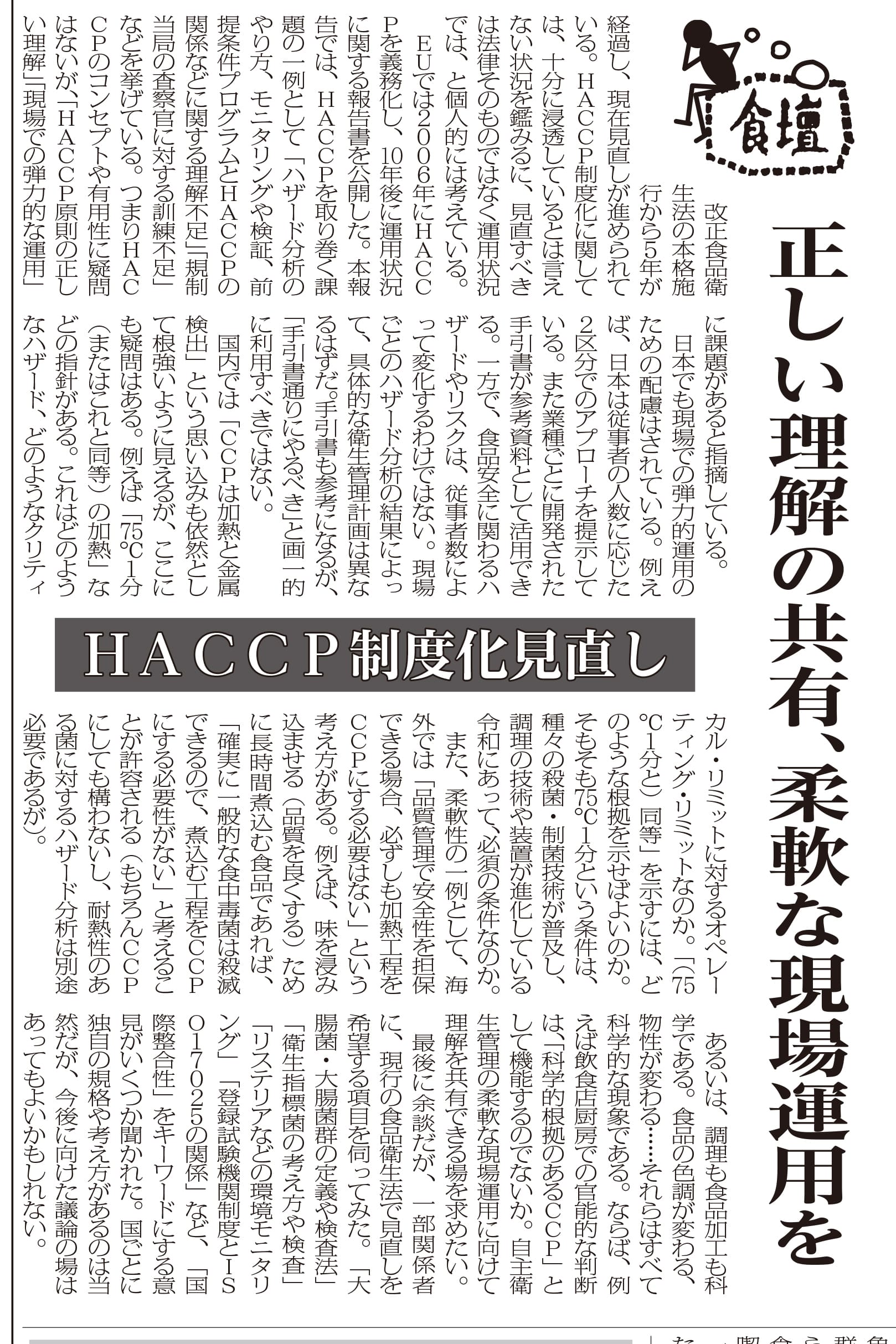 HACCP制度化見直し/正しい理解の共有、柔軟な現場運用を