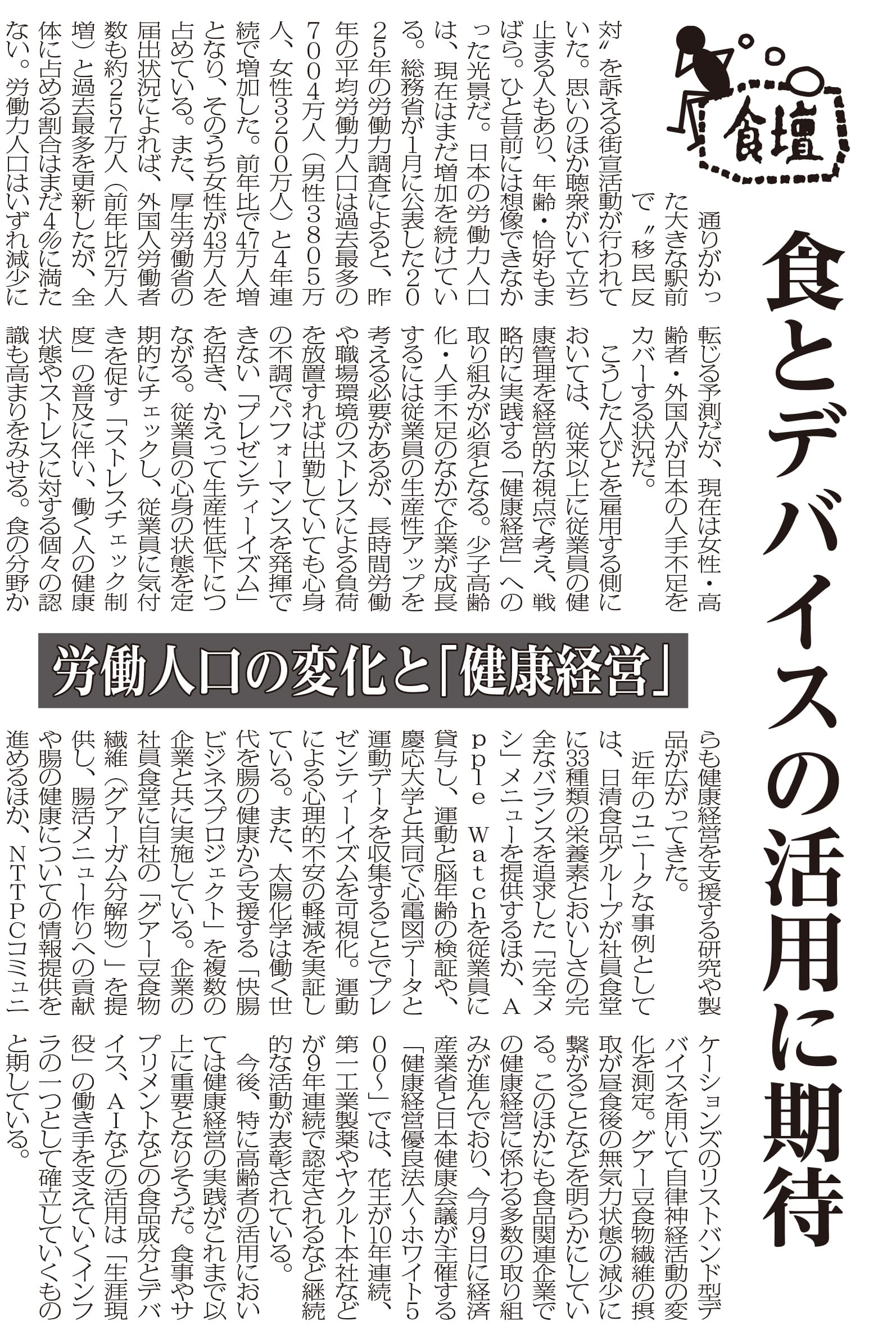 労働人口の変化と「健康経営」/食とデバイスの活用に期待