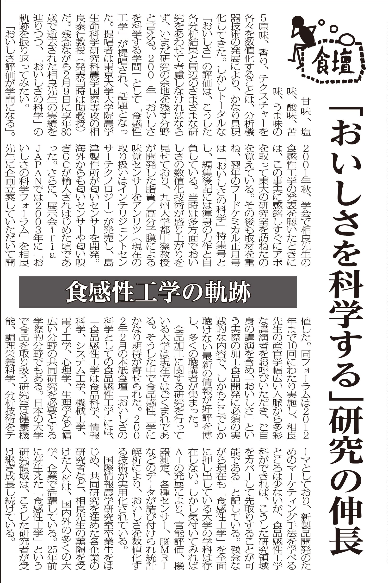 食感性工学の軌跡/「おいしさを科学する」研究の伸長
