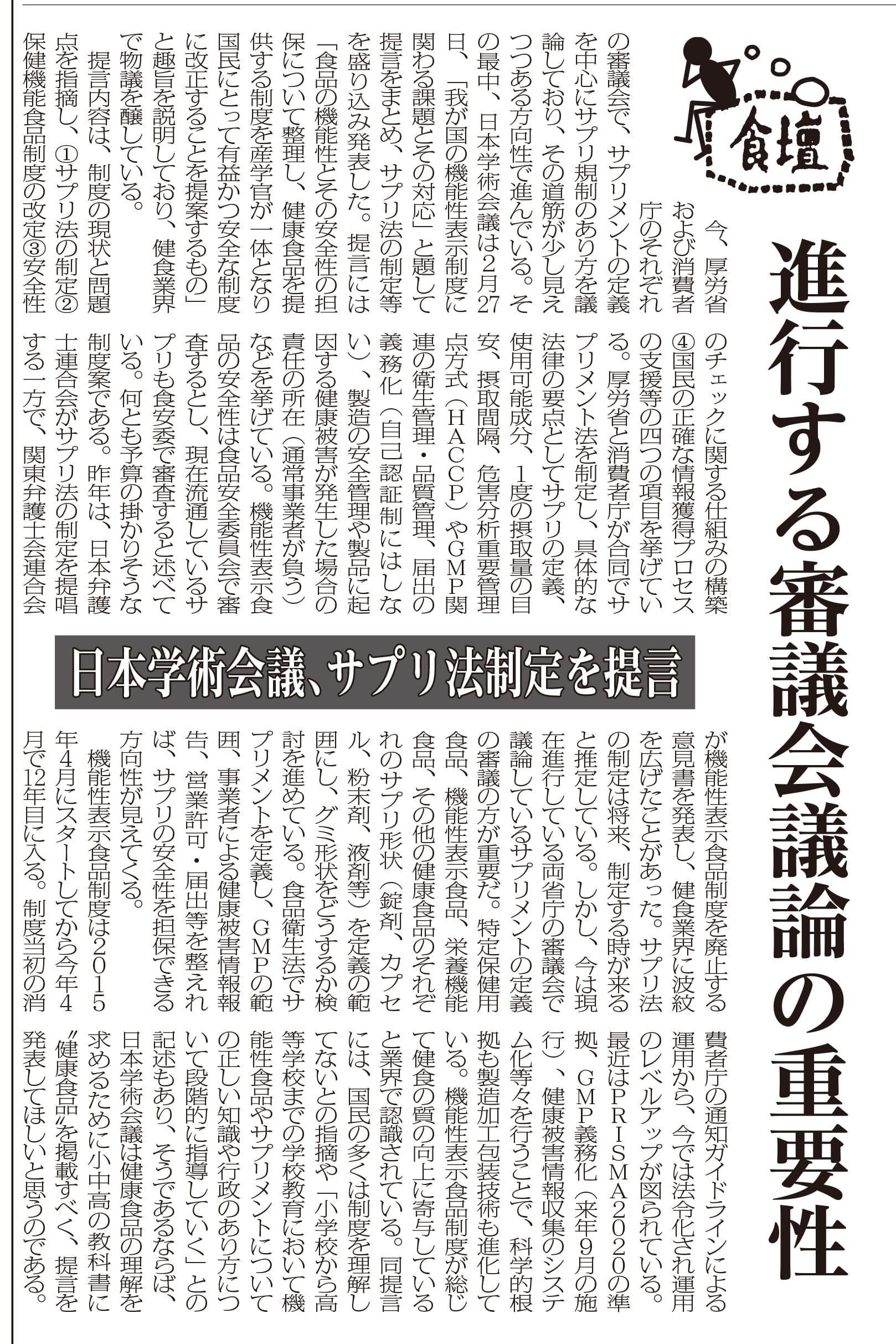 日本学術会議、サプリ法制定を提言/進行する審議会議論の重要性