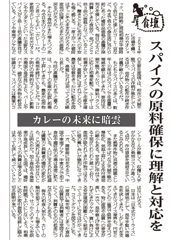 カレーの未来に暗雲/スパイスの原料確保に理解と対応を