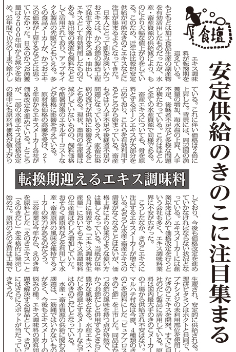 転換期迎えるエキス調味料/安定供給のきのこに注目集まる