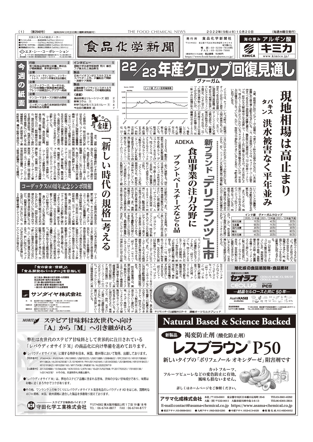 ▽グァーガム:22/23年産クロップ回復見通し/現地相場は高止まり/パキスタン 洪水被害なく平年並み